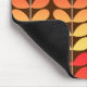 Mouse pad no século Médio Moderno Dinamarquês inspirou padrão têxtil estilizado de folhas - cores de fogo sombreadas de laranja de mandarina profunda a ouro amarela, acentuadas com bronzeado, sobre um fundo castanho de chocolate escuro