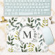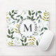 Adicione um toque pessoal ao seu espaço de trabalho com nosso mouse Pad de folhas verdes monogramas! Apresentando a aquarela eucalipto e folhas verdes tropicais em tons refrescantes.