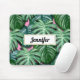 Um bocal personalizado com uma sensação de verão. O retrocesso é um padrão de folhas exóticas de filosofia tropical em verde. Imagem digital pintada à mão. Um quadro branco com uma borda falsa de folha de ouro colocada sobre cima com seu nome escrito dentro.
