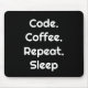 Perfect for programmers and code lovers 💻 this sleek mouse pad features "Code. Coffee. Repeat. Sleep" in white on a black background