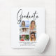 O Mouse Pad do Formando de Graduação Multifotográfica Elegante apresenta cinco das suas fotos favoritas da sua faculdade ou formando segundo grau com o robusto "Formando" do roteiro de caligrafia negra moderna. Simples, na moda e elegante. Criado por ©Evco Studio www.zazzle.com/store/evcostudio