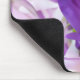 Mousepad com uma fotografia adorável de um pote de vidro de dentro roxo escuro. Uma flor roxa leve está presente no fundo.