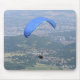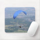 Paraglider azul brilhante com Clermont Ferrand no fundo. A fotografia foi tomada da parte superior de Puy de Abóbada, um vulcão extinto no Auvergne, France.