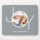 Este moderno Foto Mouse Pad é decorado com a palavra JOY em branco sobre fundo de cinza. Facilmente personalizável com sua foto e seu nome.