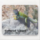 Uma fotografia do fim-acima de um lagarto colocado um colar colorido (collaris do Crotaphytus) escarrancha uma rocha no sol do norte da arizona. O clique personaliza-a! para mudar o texto no tapete do rato e adicionar um nome, iniciais ou o que você quer dizer.