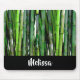 Um mouse pad com um tema asiático. Uma fotografia de uma fileira de caules verdes e amarelados de bambu.