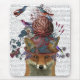 Fox Birdkeeper com Artichoke por Fab Funky. Raposa posando com pássaros e alcachofra na cabeça. Tem uma página de livro para um fundo. | 192164D