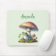 Mousepad with a cool illustration. Featuring a green frog sitting on a mound of grass. A big red mushroom sheltering him from the elements. A couple of little toadstools nearby.