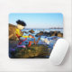 Mousepad Fubby met flessenpost aan de kust.