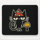 Mousepad Funny Cat With Mushroom Hat Black Cat With Toadsto