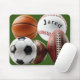 Mouse Pad, com imagens de equipamento desportivo, para cada esporte. Há futebol, beisebol, futebol e basquete. Adicione o nome da sua equipe favorita e o seu nome.