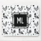 Mousepad Galinhas de desenho brancas e pretas monogramas