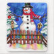 Pintura de aquarela original de Sandra Gale de um feliz boneco de neve em um jardim de inverno coberto de neve. design de excelente para jardineiros, crianças, Mães e qualquer um que goste de neve e cenas de jardim rural.