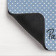 Coloque uma garota com cabelo, óculos azuis e tênis azuis em um padrão de bolinhas azul. O nome pode ser editado ou excluído.