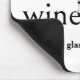 Uma bonitinha com cabelo e vestindo um vestido de denim azul, colar de pérolas, e tênis segurando um copo de vinho tinto com uma definição de vinho. A cor de fundo pode ser alterada.