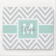 Garota, mas sofisticada, cinzas e padrão branco listrado de chevron com cor verde de menta. Personalize com o seu nome e inicial do monograma. ELKE CLARKE© DISPONÍVEL EM WWW.ZAZZLE.COM/EPCLARKE