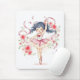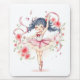 Uma doce bailarina pequena gira graciosamente, suas delicadas fitas cor-de-rosa fluindo a cada movimento, cercada por flores macias e floridas. Sua energia alegre e pose encantadora capturam a essência da inocência e graça em um mundo sonhador e com cores pastéis.