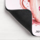 Uma almofada de rato com um gatinho fofo. Sentado em uma equipe que parece adorável. Uma pequena pata pendura na borda. Os corações rodopiam por toda a parte. Doce e caprichosa.
