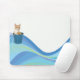 curva azul de duas tonalidades em baixo, com gatinho branco e castanho claro em pote