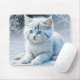 Mousepad Gato Branco Bonito Brincando na Neve