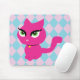 Esta design de gata fofa mostra uma ilustração de uma adorável gatinha rosa que está um pouco arrepiada, mas ela ainda é tão fofa com seus grandes olhos verdes e colarinho!