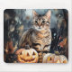 Mousepad Gato de Halloween Bengal com Pumpkins assustado
