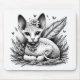 Alegria na graça de um doce gato Sphynx neste desenho encantador de tinta branca e preta. Adorada com flores delicadas e acompanhada por borboletas brancas, essa musa felina incorpora elegância e charme.