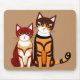 Mouse Pad em um padrão de gatas bonitinhas - um gato riscado com tigre laranja e um gatinho gengibre