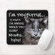 Cachorros humorísticos com cartões postais de atitude e presentes. Slogan "Sou noturno, o que significa que estou acordado enquanto você dorme" no mouse pad.