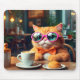 Mousepad Gato Engraçado em Café com Mouse Café
