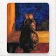 Este mousepad caracteriza um gato lindo do ouro, o alaranjado e o marrom da concha de tartaruga que senta-se em um travesseiro vermelho, olhando fixamente para fora a janela em um céu azul da meia-noite. Molda uma sombra no windowsill de madeira colorido ouro. Eu aumentei digital minha fotografia original para conseguir um efeito painterly.