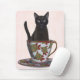 Gato Negro em Teacup por FabFunky. Possui um gato sentado em uma bela equipe floral. | 191544D