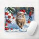 Mousepad Gato Persa Sentado em Neve com Chapéu de Natal