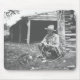 Gato que come fora de uma lata de café com um vaqueiro que olha no rancho do Pitchfork perto de Meeteetse, Wyoming.