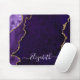 O moderno Elegante Fashionable Watercolor Purple e o Dourado Mouse Geode Agate Geode Marble Pad personalizado com seu nome no script de tendência.