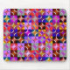 A vibrant geometric pattern composed of colorful squares and intersecting circles creates a dynamic and mesmerizing effect. The intertwining shapes are filled with gradients of green, blue, red, and yellow, generating a kaleidoscopic visual experience.