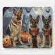 Libere o espírito assustador com esta design sombria do Dia das Bruxas apresentando um bando de cachorros sob um céu escuro e iluminado, cercado por morcegos voadores e abóboras brilhantes. Perfeito para aqueles que amam um toque de diversão terrível com seus amigos peludos!