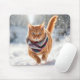 Gengibre correndo em flocos de neve com um cachecol de inverno.