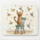 Mousepad Ginger Cat Pegando um Pássaro no Wallpaper