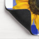 Girassol amarelo com centro cardíaco e joaninha na xadrez azul e branca de búfalo.