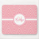 Um padrão de fundo branco e giro cor-de-rosa, cor de laranja coral e branco tribal chevron zigzag com um quadro de etiqueta para você adicionar seu nome personalizado e sua letra inicial monográfica.