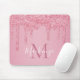 Girly Pink Sparkle Glitter Drips Monograma Mouse Pad com pingos brilhantes cor-de-rosa pincelados e seu monograma e nome personalizados. Projetado por Cedar e String. Para personalizar ainda mais, clique no link "personalizar mais" e use a ferramenta design para modificar o design. Se precisar de assistência ou itens correspondentes, entre em contato conosco.