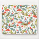 Uma ilustração personalizada do verde branco e da floresta vermelha, desenhada por Shelby Allison, com um pequeno caráter genético, cogumelos, flores e folhagem.
