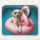 Mousepad Golden Retriever Floating In a Flamingo Float