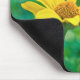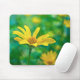 Flores amarelas brilhantes sobre fundo azul e verde.