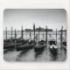 Pasta de fotos com uma fileira de gondolas tradicionais na água com Veneza ao fundo na Itália, a preto e branco.