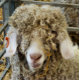 Uma design fotográfica divertida de uma linda cabra de angorá.