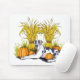 Outono e trabalho de arte de Halloween de Danes-R-Us apresentando um Grande Dane com um pano de fundo de milho e abóboras na frente.