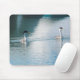 Verbos Ocidentais. Duas aves da costa nadando juntas nas águas calmas de um porto com casco de barco refletindo fora da água. Os pescoços brancos e as cabeças pretas são muito distintos.