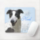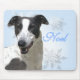 Um fundo azul claro e tranquilo com flocos de neve delicados é a folha de alumínio perfeita para nossos lindos Greyhounds. A palavra 'Noel' em uma escrita delicada faz deste um gráfico de feriado que se tornará um favorito!